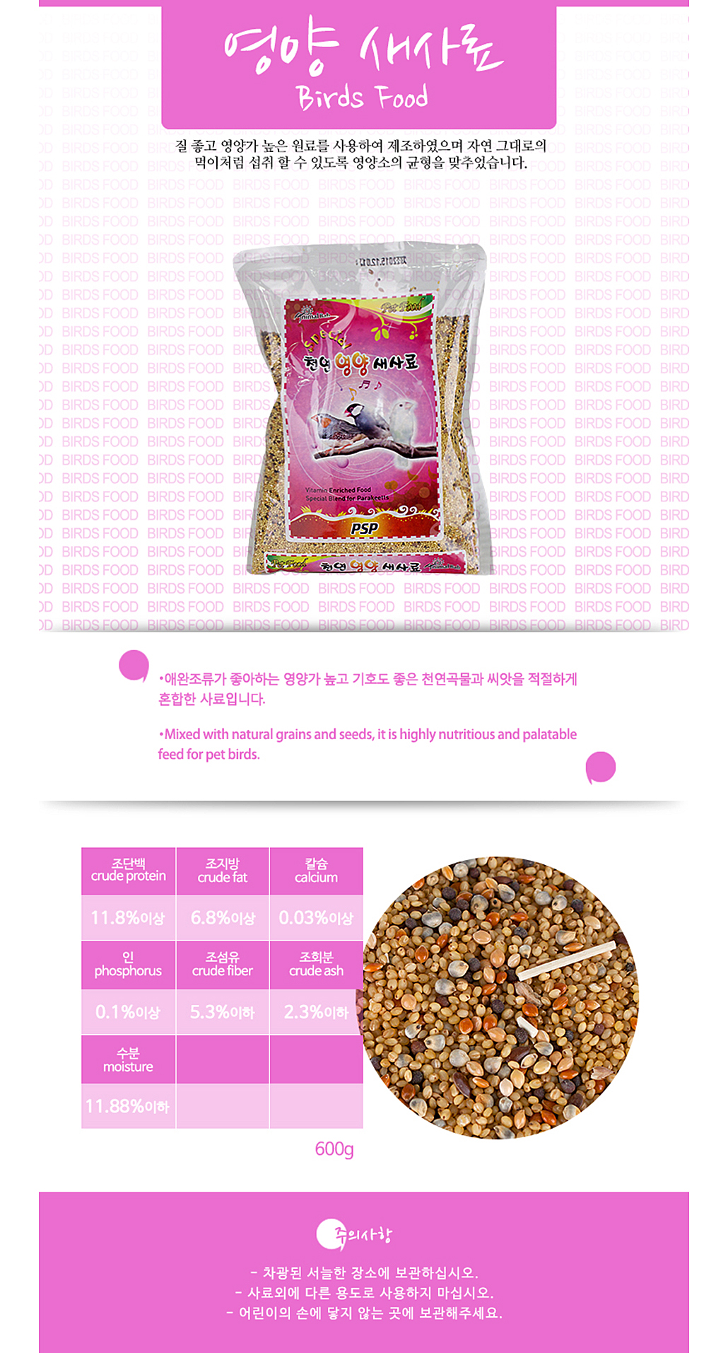 PSP 천연영양새사료 600g