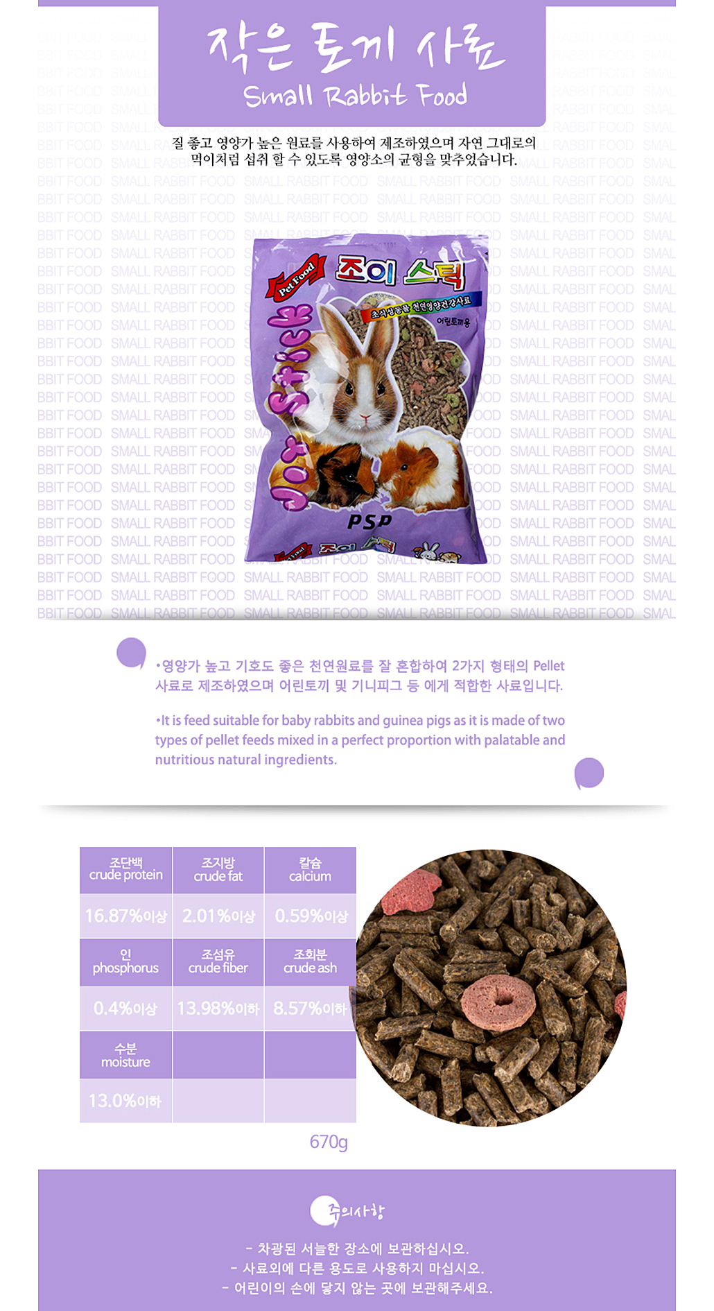 PSP 조이스틱 토끼사료(어린토끼용) 670g